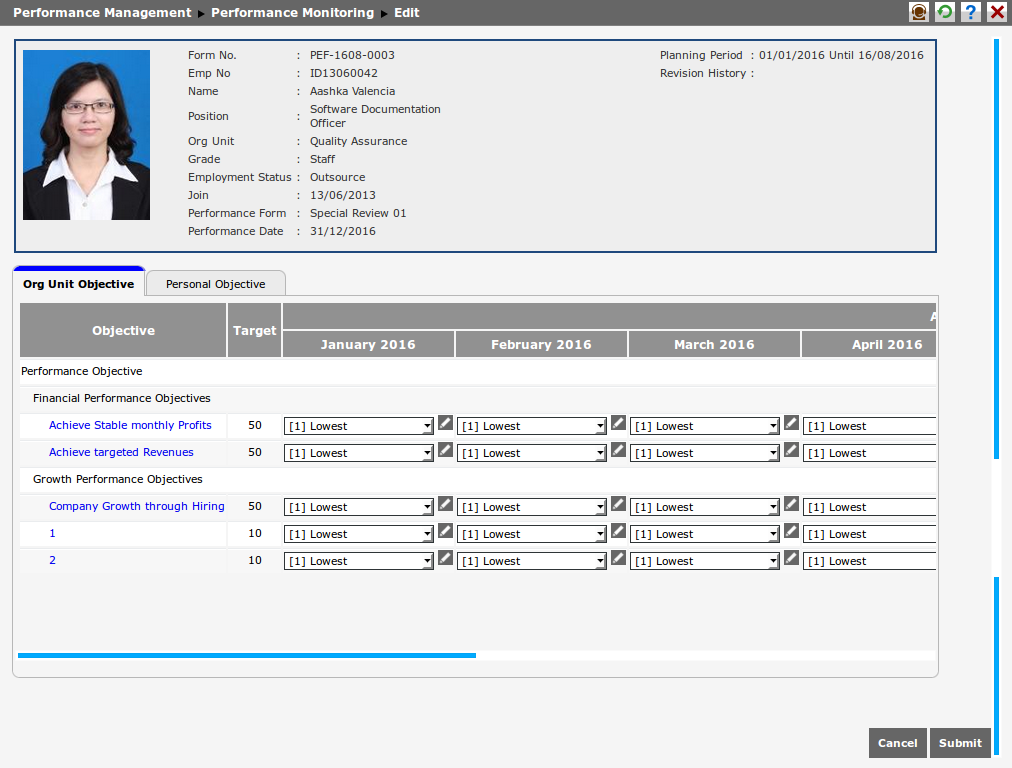 - Form No.: It is the form number of Performance Planning which is about to be monitored.