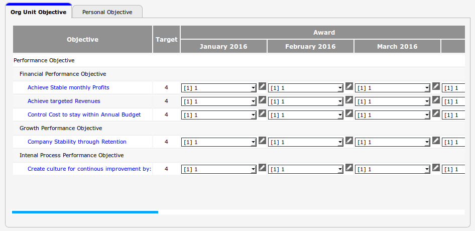 - Planning Period: It is the start date and end date of performance monitoring in accordance with Performance Period. On the above example, monitoring is performed each month.
